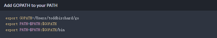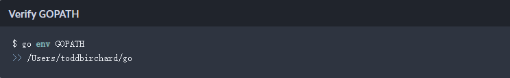 GOPATH(/Users/toddbirchard/go):与大多数编程语言不同,go的所有项目和依赖项都应该存在于一个名为GOPATH的目录中。每当我们开发Go项目或安装第三方模块时,所有的操作最终都会发生在这个目录中。