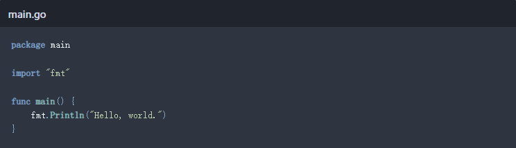 如前所述,每个Go项目的入口点都是一个名为main.Go的文件。我们将创建最简单的main.go文件:他将输出"Hello, world.":
