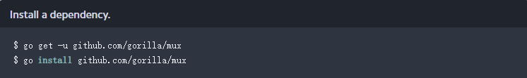 go get将gorilla/mux的源代码安装到我们的/go/bin目录中。-u标志是一个“更新”标志,我们用它获取最新版本。