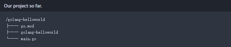 大功告成!我们刚刚在Go中创建了第一个“hello world”应用程序。您的项目结构现在应该如下所示: