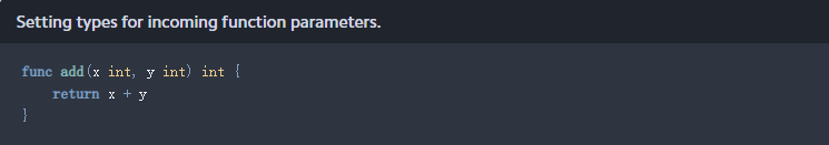 Go期望变量、传入函数参数和函数返回值具有声明的类型。在下面的示例中,函数add()接受两个整数并将它们相加,这无疑会产生一个整数: