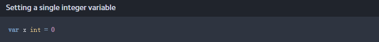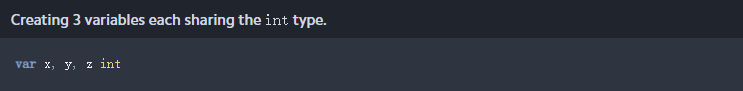 还有一种通过逗号分隔变量名来设置相同类型的多个变量的速记方法。在这种情况下,变量x、y和z被设置为无赋值的整数: