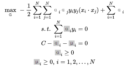 再对上式求α的极大,即对偶问题: