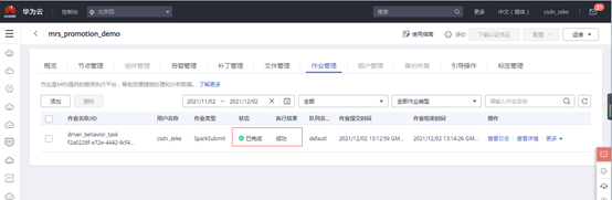 通过体验沙箱实验室的基于Spark实现车主驾驶行为分析实验后,我们可以从中学习MRS服务的创建过程,学习把文件数据上传到OBS,通过MRS里面创建作业类型为SparkSubmit,实现车主急加速、急刹车、空挡滑行、超速、疲劳驾驶等违法行为的次数的统计分析。