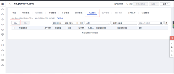 同步完成后切换到“作业管理”页签,点击“添加”。