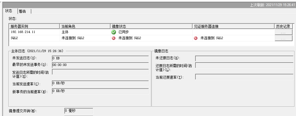 镜像监视器无法查看备机的状态