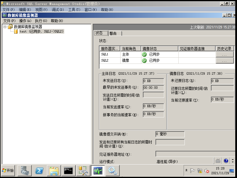 通过查看sys.database_mirrorin确定同步一切正常。