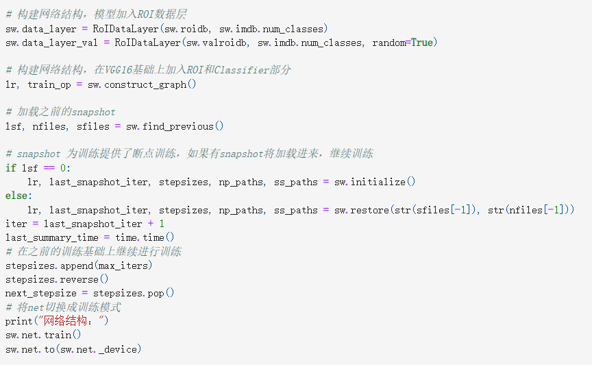 为了减少训练时间,我们在预训练模型的基础上进行训练。这里,我们使用VGG16作为FasterRCNN的主干网络。