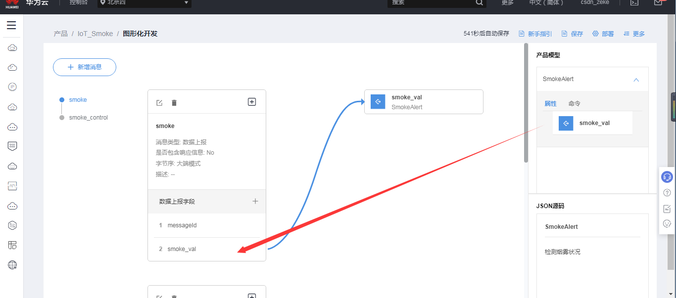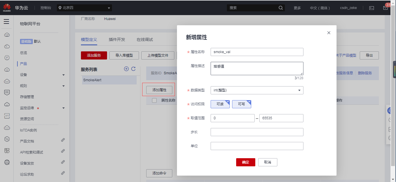 服务列表选中“SmokeAlert”,点击右侧“添加属性”,输入以下信息: