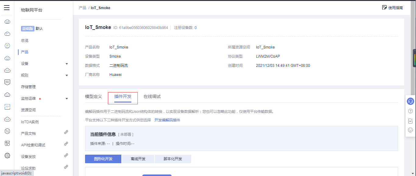 点击产品名称,进入产品详情页,点击标签页“插件开发”