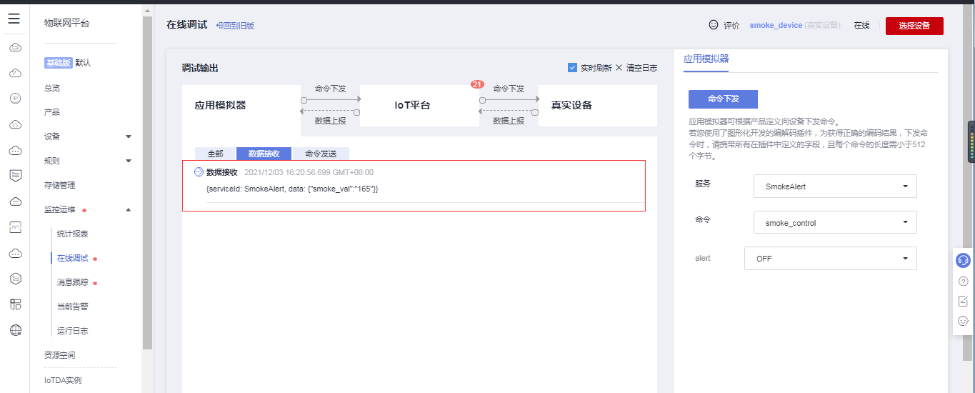 下面我们通过华为云设备接入服务模拟智慧烟感的实现过程。