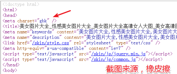 在数据返回 Response 对象之后,通过 res.encoding="GBK" 设置了数据编码,该值可以从网页源码中获取到。