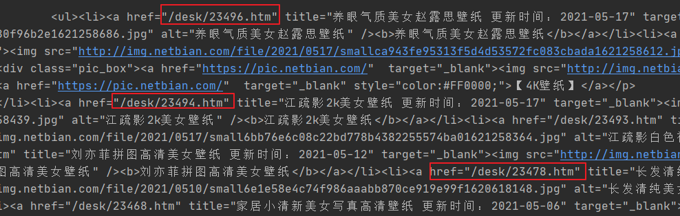上文返回的目标文本如下所示,本小节的目标就是获取到图片详情页地址。