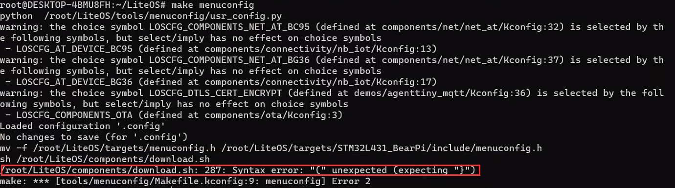 首先感谢 Lyb99i 找了好久才终于在这张帖子上找到解决方法《执行make menuconfig,明明保存更改了,提示没有改变,还有错误》
