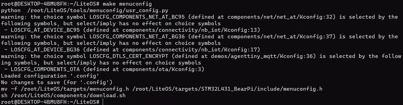 在Windows下的LiteOS进行工程配置过之后也会运行“sh components/download.sh”命令,但是会卡2分钟或更久,但在Ubuntu环境下,只运行10秒左右,这一点也节省不少时间。