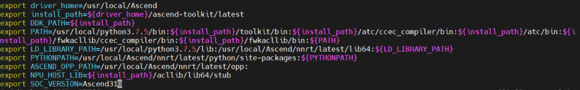 export LD_LIBRARY_PATH=/usr/local/python3.7.5/lib:/usr/local/Ascend/nnrt/latest/lib64:${LD_LIBRARY_PATH}