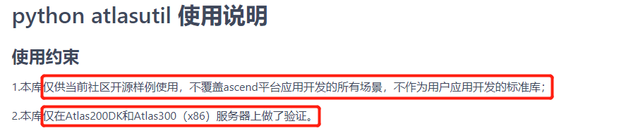 因为实验中使用了atlasutil,这是昇腾官方团队自行封装的一个库,应该是为了方便Python开发,但是我看了下,这个库仅供使用,不覆盖所有场景,还是有限制的,快速验证还是可以用的,ECS也能用。不过,配置安装过程复杂。这里不用这个了,直接上官方原始的案例就行了。