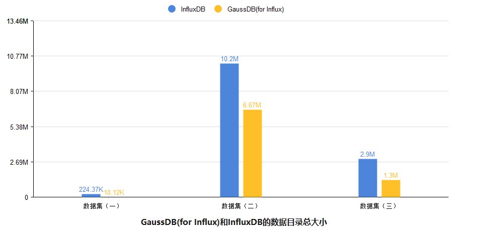 GaussDB(for Influx)与InfluxDB的压缩率结果对比和数据集说明如下表所示: