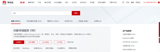 在搜索栏搜索OBS,点击进入OBS控制台。