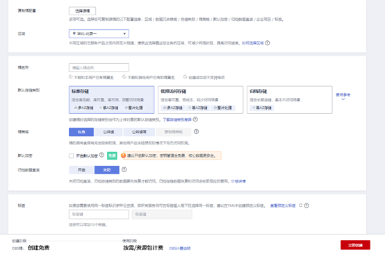 请填好下面这些信息,最后点击创建桶。