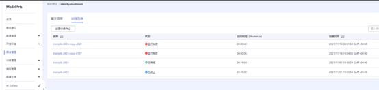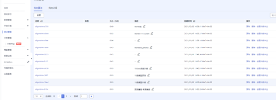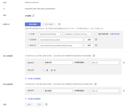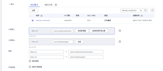 算法创建完成,根据算法创建一个训练作业: