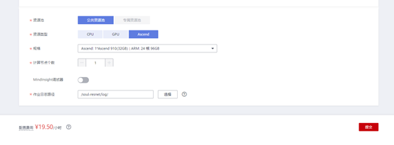资源选择Ascend,因为代码是使用的Ascend,注意选择 1 * Ascend910 (19.5r/h)