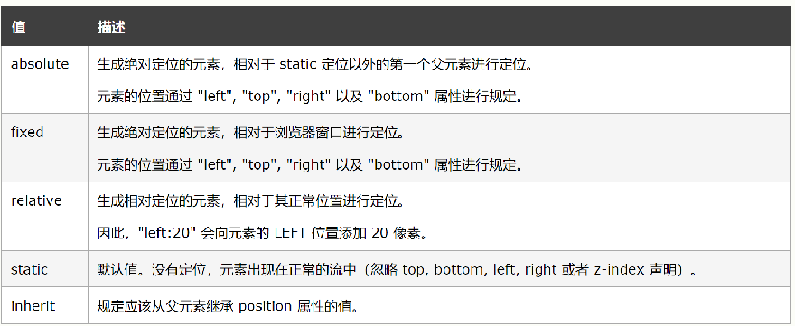 position属性指定一个元素(静态的,相对的,绝对或固定)的定位方法的类型。