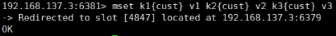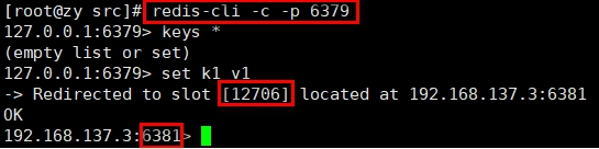 - redis-cli -c –p 6379 登入后,再录入、查询键值对可以自动重定向