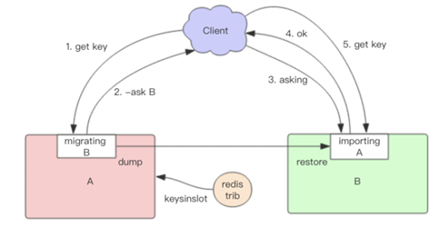 - 4 客户端收到后,先去目标端执行不带任何参数的 ASKING指令