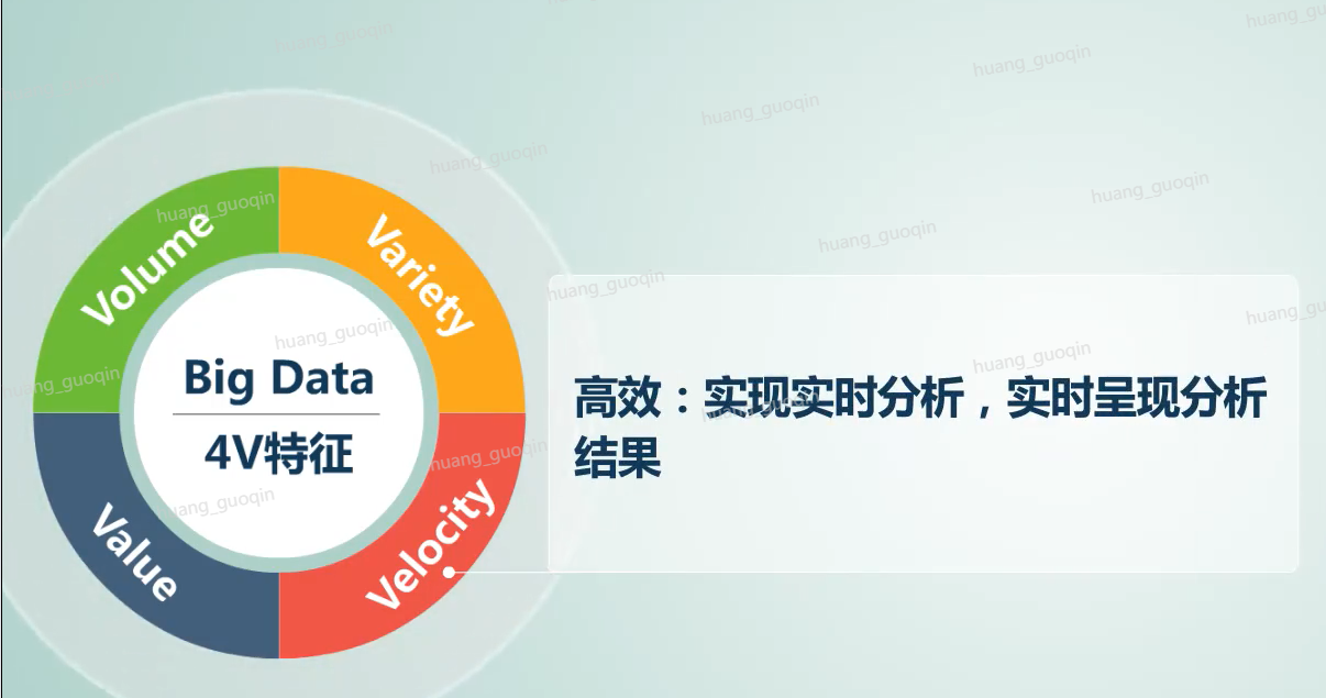 第四个V是velocity,高效主要体现在实时分析,实时呈现分析结果。