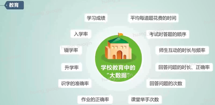除了金融行业以外,还有教育行业,比如大数据应用分析被应用到美国的公共教育中,成为教学改革的重要力量,包括了学习成绩、入学率、辍学率、升学率等等一些内容的统计、分析和应用。