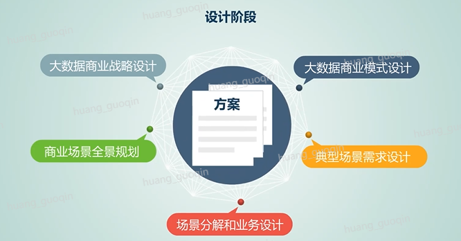 设计阶段主要包括大数据商业战略设计、大数据商业模式设计、商业场景全景规划、典型场景需求设计、场景分解和业务设计等,最终根据典型场景形成运营方案。