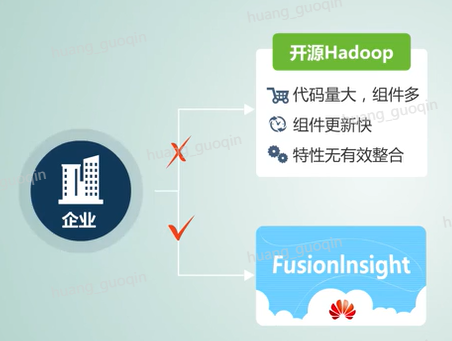 那么如此大量的代码以及频繁的产品更新,再加上组件之间的松耦合,势必会使得开源的Hadoop平台在管理、使用以及维护中消耗掉大量的人力和物力,这对于企业来讲并不是一个合格的产品。而华为的Fusionlnsight HD就是从开源到企业级蜕变后的产品。