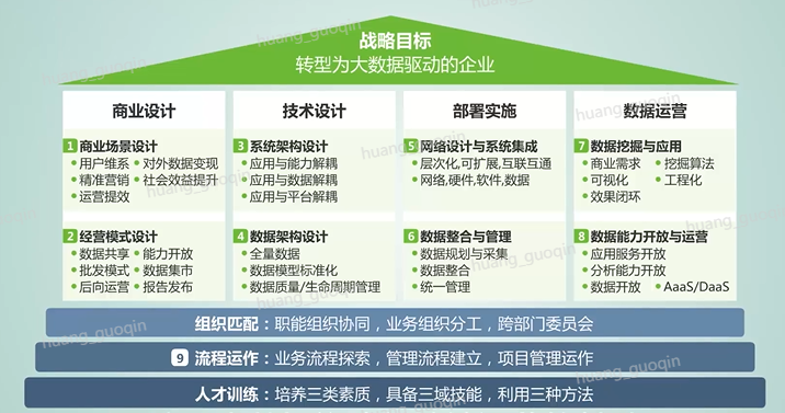 最后的执行阶段主要是对商业方案和技术方案进行落地,并形成相关的管理体系、流程制度,并由IT部门去实施执行。最终形成华为大数据商业咨询服务的总体方案,它能帮助传统企业设计、构建和运营大数据系统,向大数据驱动的企业进行转型。