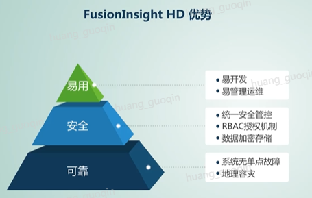 华为的Fusionlnsight HD大数据平台采纳了开源社区平台的精华,去除了开源平台的bug。具体的做法是谨慎地选择稳定基线版本,认真评估高版本补丁的影响范围,采用数万个测试用例,从而来确保企业版本的稳定性,最终形成易用的、安全的、可靠的企业级大数据平台。其中易用用主要指易开发、易管理运维。安全指的是Fusionlnsight HD集成了统一的安全管理入口,RBAC授权机制以及数据加密安全等安全措施。可靠主要体现在系统无单点故障,并且实现地理容灾。可见华为的Fusionlnsight HD平台既源于开源又高于开源。