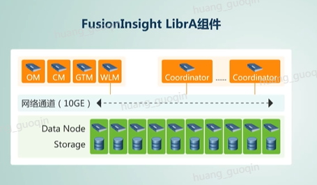 Fusionlnsight LibrA是一个并行的数据库集群,是为新一代数据仓库所需的大规模数据和复杂查询功能而设计。该产品采用现代云计算的MPP理念和shared nothing架构,以及高性能、高可用性和动态扩展等特性,为超大规模数据管理提供了一个高性价比的通用平台。当然其核心竞争力也主要体现在这些方面。而在Fusionlnsight LibrA的架构中,主要包含了这么一些组件,Storage存储主要用于持久化存储,数据存储形式包括了行存储、列存储以及混合存储。data node指的是执行查询任务分片的逻辑实体,WLM工作负载管理器用于控制系统资源的分配。GTM全局事务控制器,用于全局一致性事物的控制,多版本并发控制mvcc机制。Coordinator连接节点用于接收用户连接,分解并调度任务分片,然后并行执行。cm集群管理模块用于管理各功能单元和物理资源,om运维管理模块用于运维、配置管理、接口及工具。