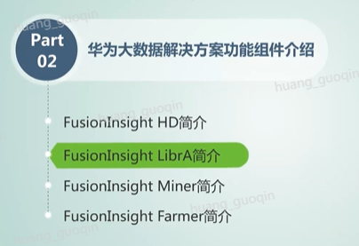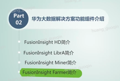 华为大数据解决方案Fusionlnsight架构中包含了各种各样的功能组件。接下来我们来深入地认识一下华为大数据解决方案功能组件介绍的内容。这部分内容将主要包括Fusionlnsight HD、Fusionlnsight LibrA,Fusionlnsight Miner和Fusionlnsight farmer简介。