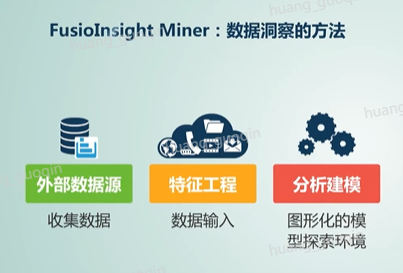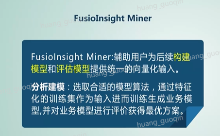 接下来我们继续学习功能组件中Fusionlnsight Miner组件,Fusionlnsight Miner称为是华为大数据的洞察平台。从这张图中我们可以看出,miner是处于Hadoop与应用之间的大数据的核心组件,对外提供数据挖掘的业务能力,面对大数剧带来的挑战。用户可以结合自己的领域知识以及Miner从各类原始数据中提取到活跃的、优质的数据,以便为后续构建模型和评估模型提供统一的向量化输入。而所谓的分析建模是指选取合适的模型算法,通过特征化的训练集作为输入进而训练生成业务模型,并对业务模型进行评价获得最优方案,同时还提供了模型的部署和调度管理。而数据的可视化主要是指将分析出来的数据做出清晰、完美的呈现,这个就是Fusionlnsight Miner组件。