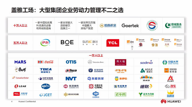 目前,盖雅工场的客户分布在全球24个国家与地区,每天,全球1,500余家客户的500余万员工使用盖雅提供的服务。他们包括华润、京东方、特变电工、英格索兰、歌尔声学、太古可口可乐、康师傅、雅诗兰黛、周大福、LVMH、波司登、7-Eleven、开市客、药明生物、PPG、大众汽车、凯傲集团、延锋内饰、融创文旅、融创服务集团、华夏幸福、索迪斯、四季酒店、中铁沈阳局等。