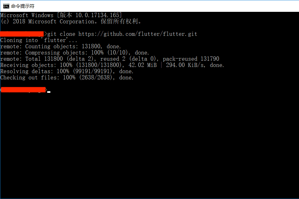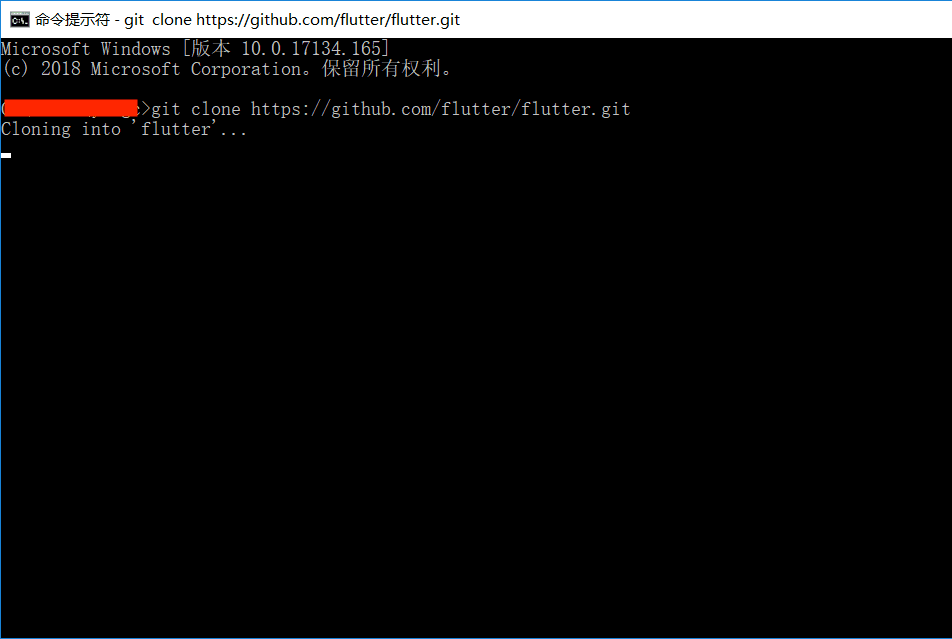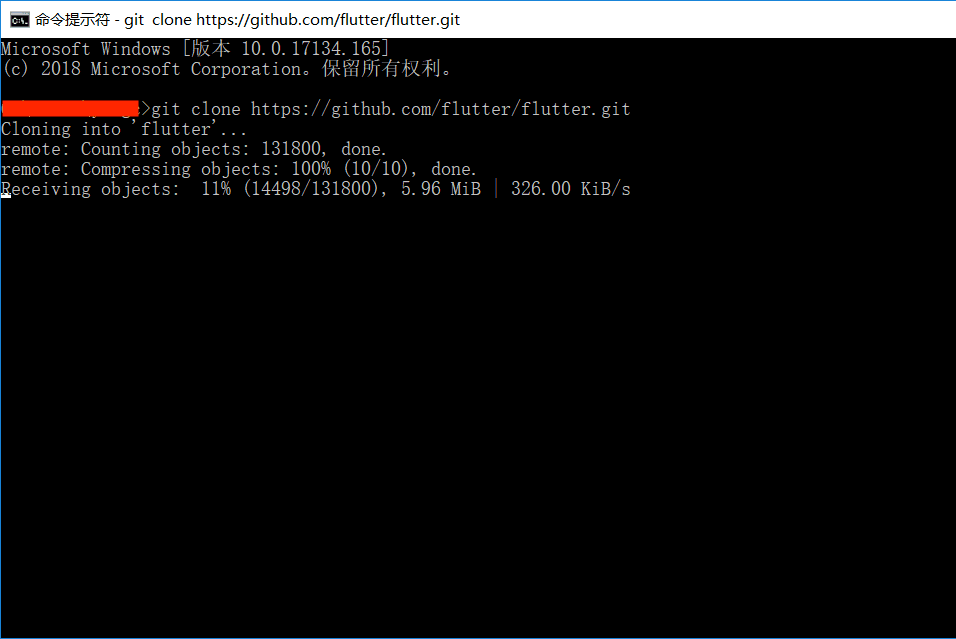 cmd -> git clone https://github.com/flutter/flutter.git,clone 需要一段时间,如图;