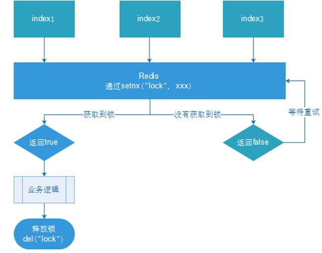 2. 获取成功,执行业务逻辑{从db获取数据,放入缓存},执行完成释放锁(del)