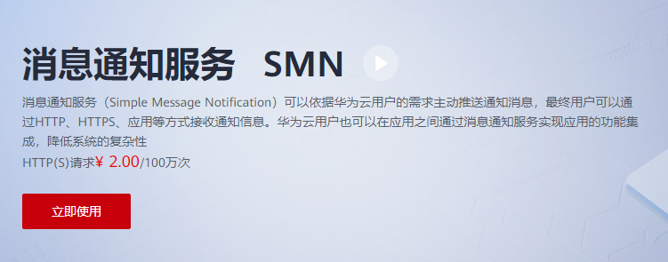 首先进入 消息通知服务 主页。 https://www.huaweicloud.cn/product/smn.html