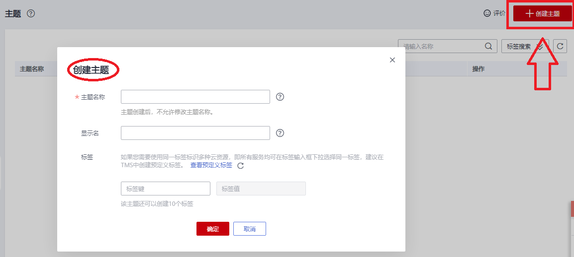 创建主题的参数说明如下: