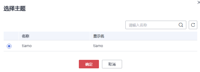 单击“主题名称”输入框右侧的+,在弹出的选择主题对话框中选择之前加的主题。