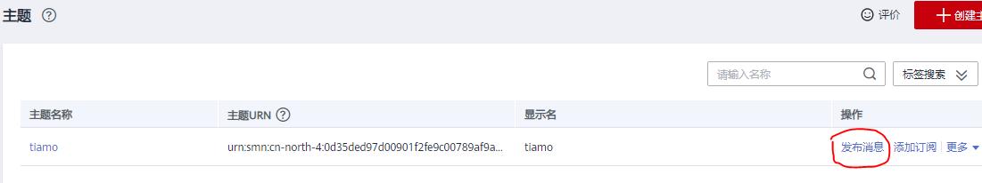 - 在主题列表中,选择您要向其发布消息的主题,在右侧“操作”栏单击“发布消息”。