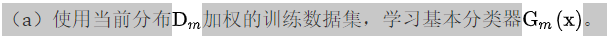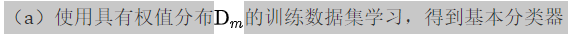 步骤(2) AdaBoost反复学习基本分类器,在每一轮m=1,2,...,M顺次地执行下列操作: