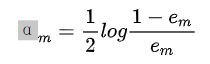 【摘要】 假设给定一个二类分类的训练数据集AdaBoost算法:输出:最终分类器G(x)。(1)初始化训练数据的权值分布(2)对m=1,2,...,M这里的对数是自然对数。(d)更新训练数据集的权值分布(3)构建基本分类器的线性组合得到最终分类器对AdaBoost算法作如下说明:步骤(2) AdaBoost反复学习基本分类器,在每一轮m=1,2,...,M顺次地执行下列操作:(d)更新训练数据的权值分...