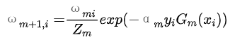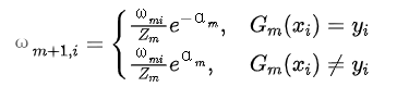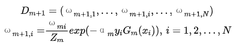 (d)更新训练数据的权值分布为下一轮作准备。