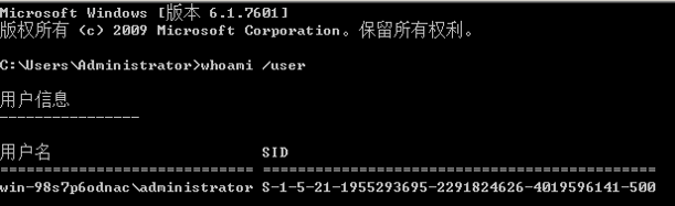 2、查询目标机器的SID:单击【开始】--》【运行】,执行cmd--》输入whoami /user,回车。