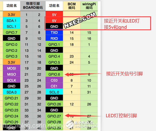1、树莓派3B,接近开关一个,发光三极管一个。